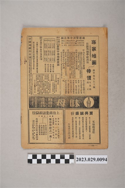1.本物件為中華職業教育社編輯《生活》第五卷第十七期,由中華職業教育社編輯,正面右下方寫有「本期要目」記載當期文章題名,正面為小言論專欄,本期題目為「希望胡先生勿忘蛋炒飯」;背面為廣告頁,刊登聚興誠銀行、上海商業儲蓄銀行、日新輿地學社等廣告;翻開內頁為文章與廣告,文章包含「精神屠殺」、「匆忙鐘點」、「新聞記述」等,而廣告則為上海金誠工藝社、上海計時公司等商家。