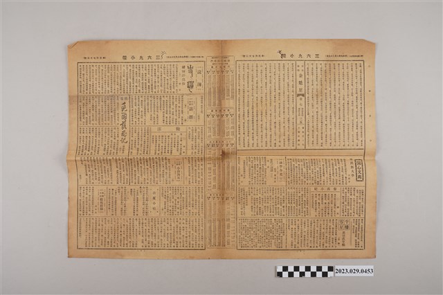 1.本物件為三六九小報社發行《三六九小報》第三百七十二號,發行人為趙雅福,正面有官許賣藥定價表、王外科醫院、蘭記圖書部、大億商行等7個廣告;背面為雜爼專欄「關於神的研究」、「新聲律啟蒙」、「台灣文化畧說(一七)」、「一笑集」、「詩壇」、「海外零訊」等內容;翻開內頁有明史說部「金魁星」、開心文苑專欄「跳舞大學」、謎學全史專欄(二九)「晉代之謎話(二)」、「餐霞小紀」、「黑襯衣宰相」等文章,說海專欄有「南洋僑俗(五)」、短篇滑稽「講經(下)」、「餘沫」、續篇「情網餘生(四六)」、滑稽小說「小孩淘氣(下)」、「