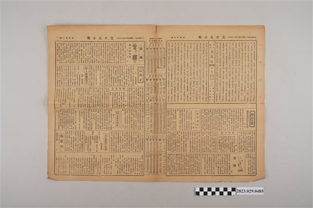 1.本物件為三六九小報社發行《三六九小報》第四百七號,正面為廣告,有泰安合資會社、崇文堂書店、六和商店、王外科醫院、和光醫院等單位;背面寫有雜爼專欄「南遊紀畧」、「話柄」、「孤芳館諧談」、「霞飛將軍軼事」、「天然酒之發見」、「開化里樵歌」等文章,左下有花叢小記;翻開內頁有「金魁星」、「蒙靑奇俗」、「墨餘」、短篇小說「浪子」、長篇社會小說「蜃樓花月」、現世滑稽「樂暢俱樂部」、「獨幕劇」等文章及海外零訊。2.《三六九小報》發行時間自昭和5年(1930)至昭和10年(1935),旨以刊登戲謔、針砭時事之文,反