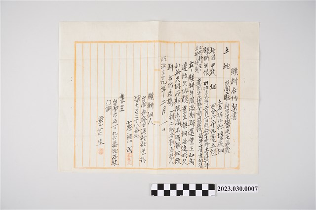 2023.030.0007 明治39年2月1日葉芷生與蔡戅成立贌耕合約契書