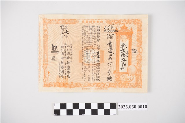 2023.030.0010 昭和7年9月6日臺南市時敏齋本店時計保證證券