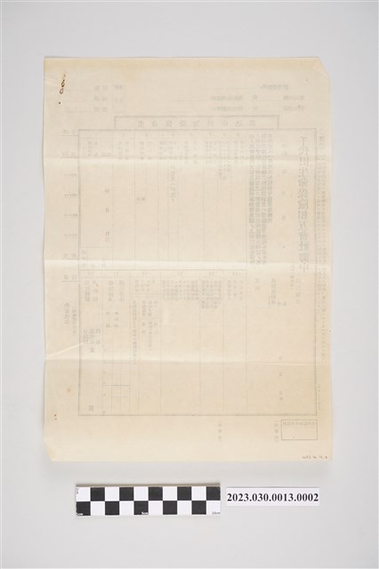本件為千代田生命保險相互會社的生命保險契約申請表,共有15欄主要登記欄位。本件為空白表格,無任何手寫痕跡。單面印製。本件為日治時期葉作揖投保文書的其中一件,其於1935-1945年間投保並繳納保費,當可見證日治中期起臺灣生命保險(即人壽保險)產業發展,以及臺灣人參與投保之過程。