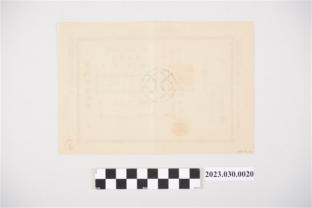 本件為保險費繳納收據,由千代田生命保險相互會社臺南鄉軍代理店於昭和12年(1937)2月24日開立,付款人為葉作揖,其於同年1月3日繳納半年份保險費16圓19錢。本件使用該會社的收據用紙,右方置有標題「保險料領收證」。鈐有「千代田生命保險相互會社印」朱文方印(套印)及「領收門野社長」朱文圓印、「笹野」朱文圓印、「昭和拾貳年貳月貳拾日受付」朱文條戳。付款人葉作揖(1903-1966),臺南市人,臺南葉大觀家族葉朗初(1874-1935)與陳進發(1871-1945)之子。臺北開南商工畢業,曾任職臺南州農會書記、臺南市政府主計室。本件為日治時期葉作揖投保文書的其中一件,其於1935-1945年間投保並繳納保費,各期共20張收據皆妥善收納,本件為其收納的第4張收據。此批物件當可見證日治中期起臺灣生命保險(即人壽保險)產業發展,以及臺灣人參與投保之過程。