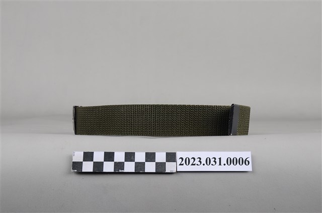 本件為曾聖光於烏俄戰爭前線穿戴的腰帶。環扣與織帶分別以金屬和帆布製成,環扣表面有些許鏽斑、中央鑄有星形符號。2022年俄羅斯入侵烏克蘭(簡稱烏俄戰爭)之際,花蓮縣吉安鄉阿美族曾聖光(1997-2022)戰士於2022年6月11日獨自赴歐加入烏克蘭領土防衛國際軍團,於11月2日於烏東頓內次克州利曼方向與俄軍交戰時遭到戰車砲彈襲擊陣亡。曾氏捐軀後於2023年5月28日由烏克蘭總統澤倫斯基簽署命令,獲頒三等勇氣勳章,以感謝其捍衛烏克蘭主權及領土完整所付出的犧牲。