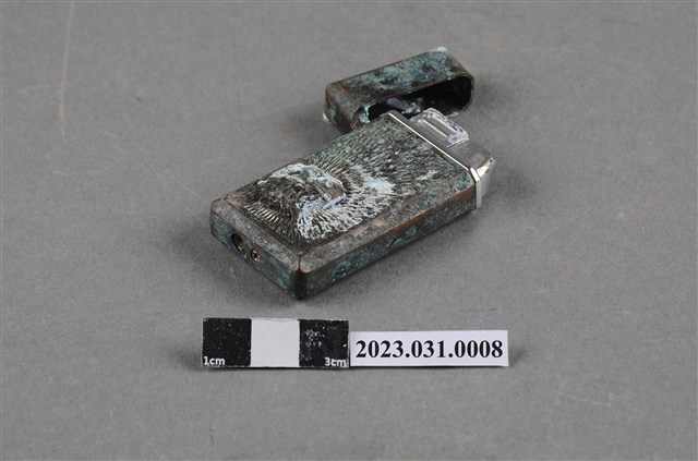 本件為曾聖光於烏俄戰爭前線使用之打火機,表面有嚴重的氧化與白化痕跡,推測材質為金屬銅,底部左側有孔洞,應為瓦斯灌入孔,正面雕有立體老鷹頭像與幾何花紋浮雕。可顯示曾聖光在戰地前線的境遇過程,為見證現代戰爭和國際衝突的重要物件。2022年俄羅斯入侵烏克蘭(簡稱烏俄戰爭)之際,花蓮縣吉安鄉阿美族曾聖光(1997-2022)戰士於2022年6月11日獨自赴歐加入烏克蘭領土防衛國際軍團,於11月2日於烏東頓內次克州利曼方向與俄軍交戰時遭到戰車砲彈襲擊陣亡。曾氏捐軀後於2023年5月28日由烏克蘭總統澤倫斯基簽署命令,獲頒三等勇氣勳章,以感謝其捍衛烏克蘭主權及領土完整所付出的犧牲。