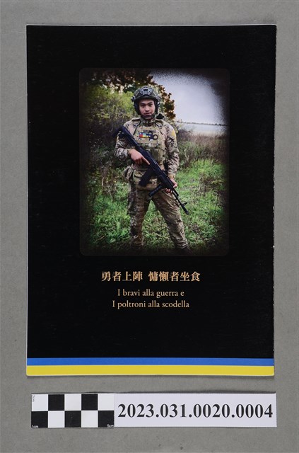 本件為曾聖光追思音樂會會場發放之節目單。封面印有曾聖光身穿戰地服裝的黑白肖像照,左下方印有烏克蘭陸軍第49獨立步槍營的兵徽與音樂會資訊,右下角印有中華民國國旗紋樣的帶飾,封面最底部印有烏克蘭國旗配色的飾條。封底為曾聖光彩色全身照,並在中下位置寫有「勇者上陣 慵懶者坐食 I bravi alla guerra e I poltroni alla scodella」的古羅馬諺語字樣。