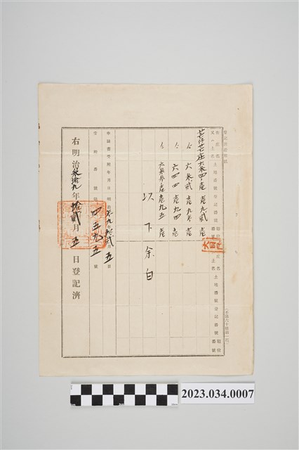2023.034.0007 明治39年芒仔芒土地登記濟證用紙