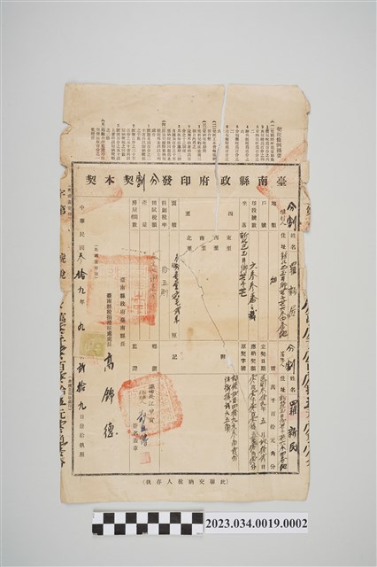 2023.034.0019.0002 民國39年羅新民繳納臺南縣政府芒仔芒633-2番號土地分割契稅
