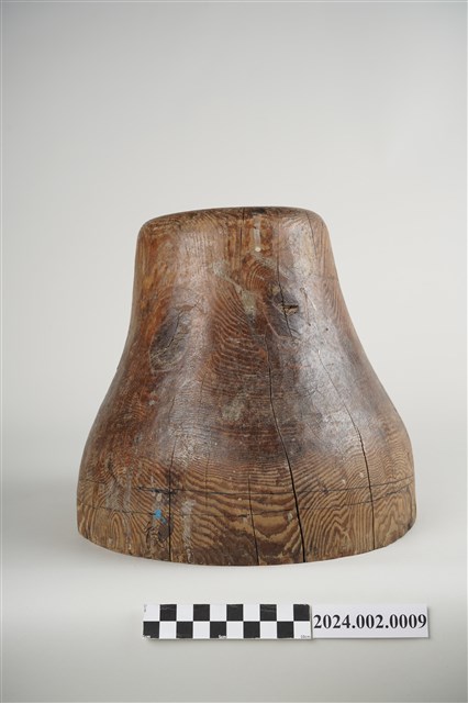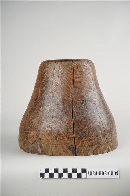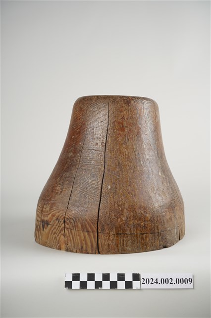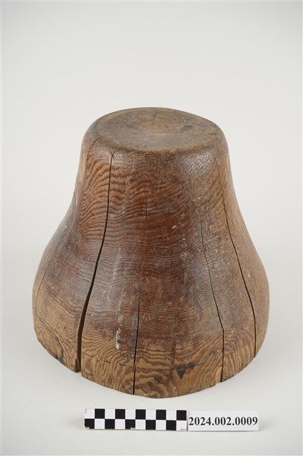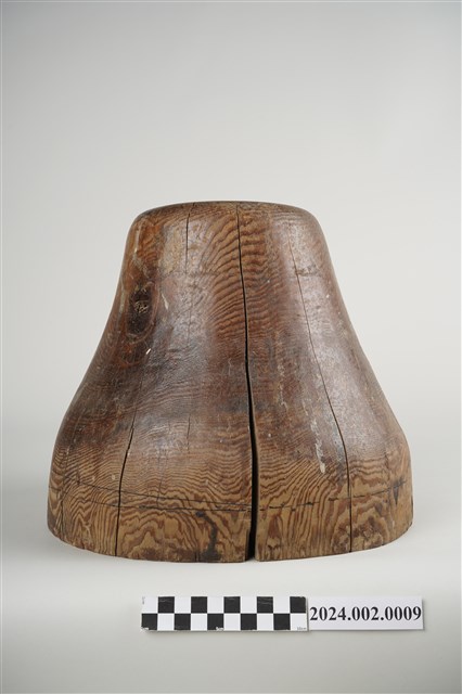 扁平型木帽模,由三片木塊組合而成一扁平圓拱形木模,主要為草帽編織完成後,使用機器壓印塑型時用以支撐帽子內部之模具。