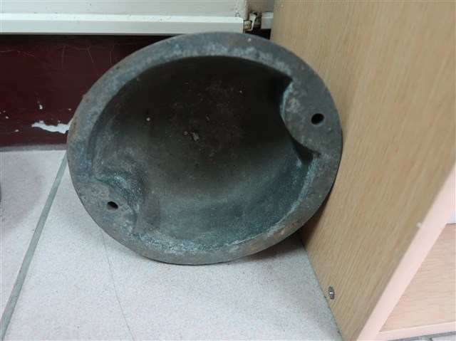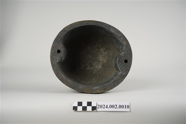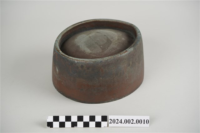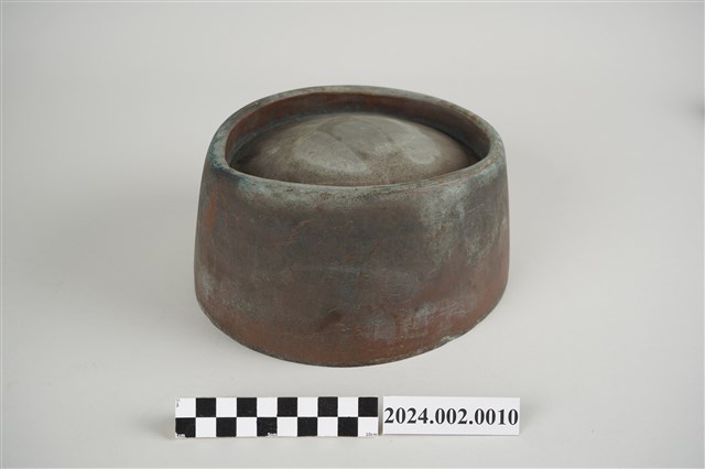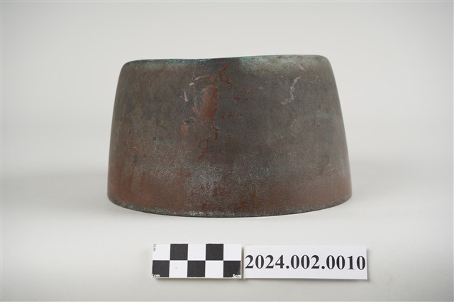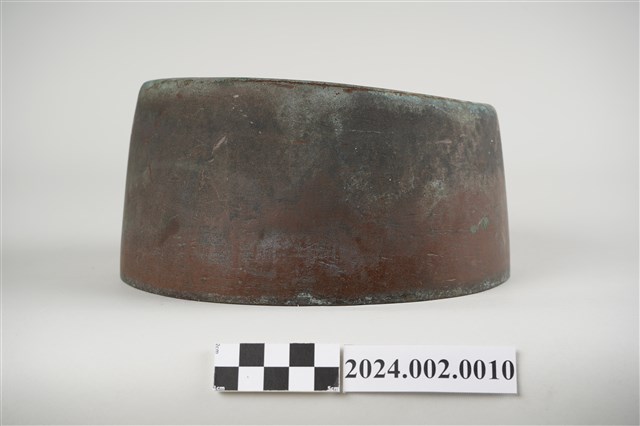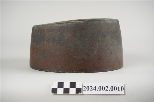 紳士帽銅帽模,外型呈圓柱形,內部中空,頂部帶有一圈內凹凹槽。
