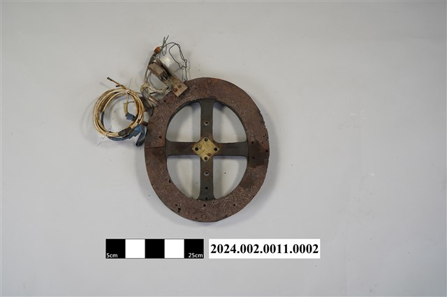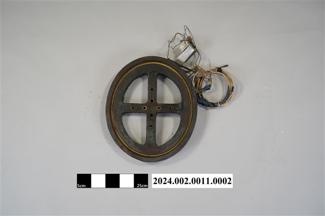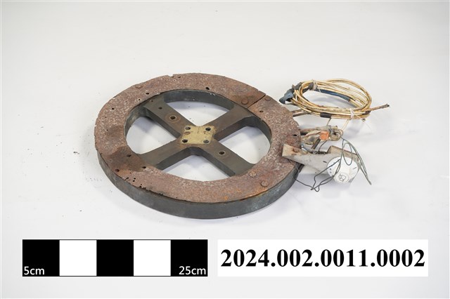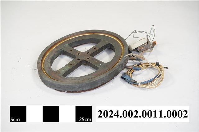 本件為郵差帽的帽沿壓模,需搭配油壓機之操作,將已壓製完成頭型的帽子粗胚,放置其上,再進行帽沿加工壓製出帽沿的捲邊。