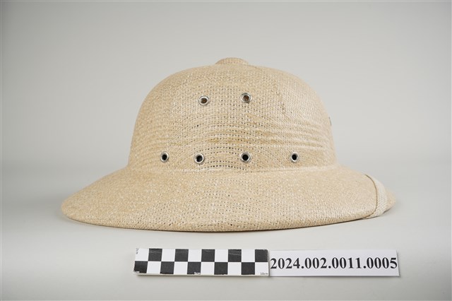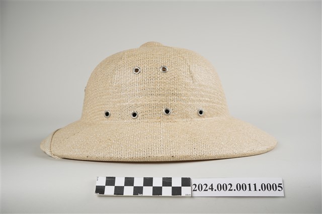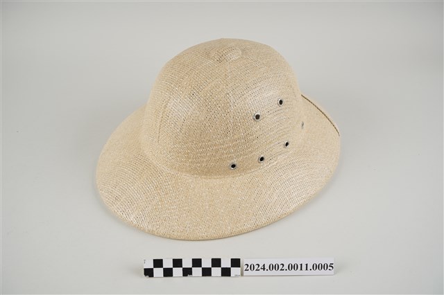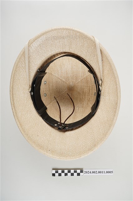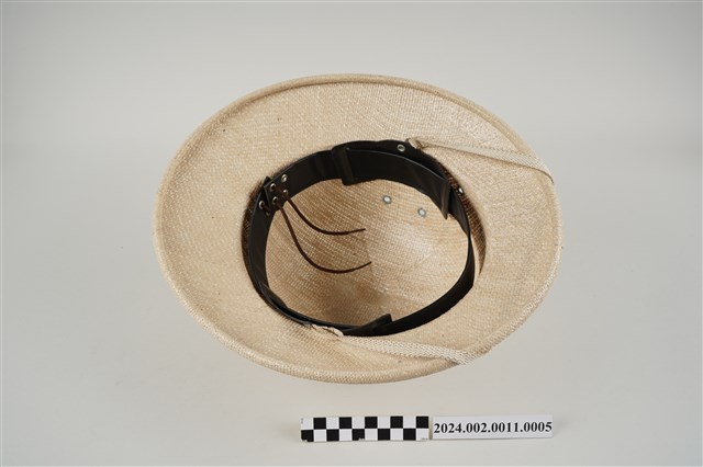 麻料郵差帽粗模,主要麻料板以模具加印成郵差帽的外型,粗模完成後然後再拿去做其他加工,例如打孔、繃布、貼標籤等。