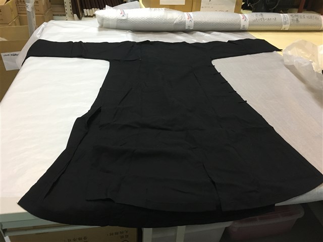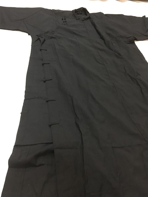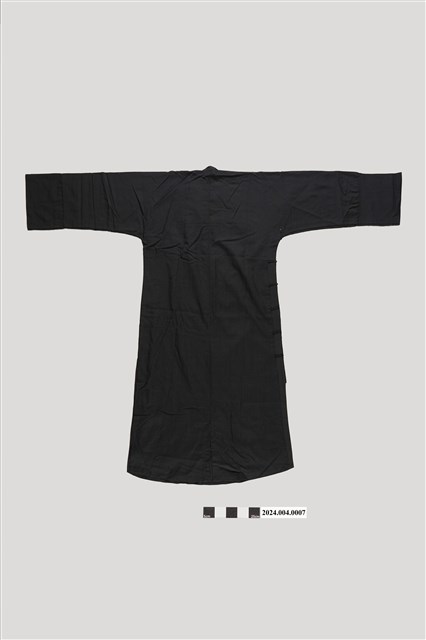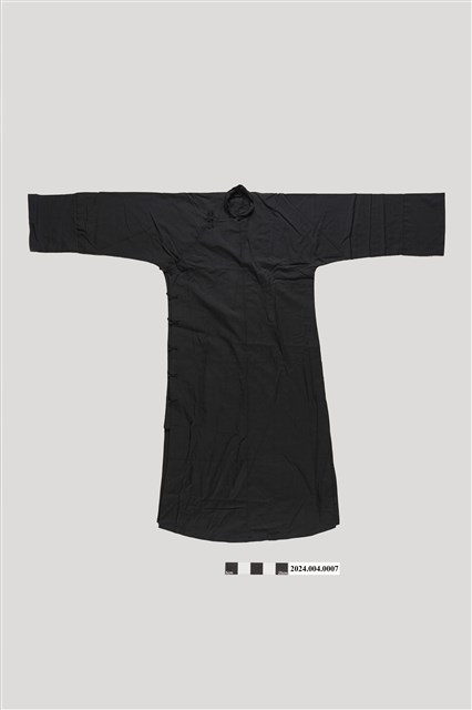 據口述為張陳氏員女士所有,張陳氏員女士(1864-1946)為臺中墩仔腳人,40餘歲時因鄰居介紹開始到墩仔腳教會,張家一族之基督信仰始於此。女子長衫,衣物狀況如新,本件屬於臺灣早期婦女之服飾,