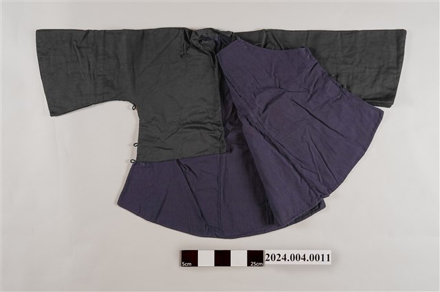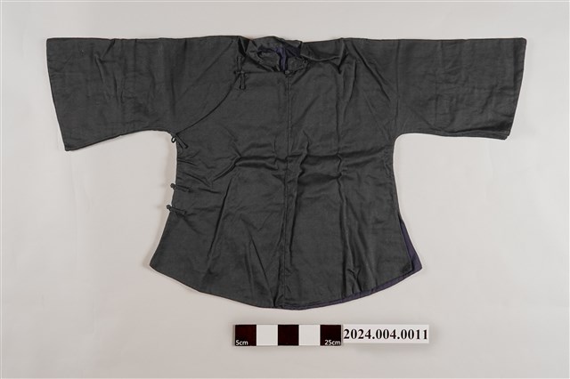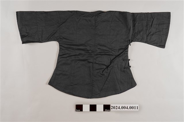 據口述為張陳氏員女士所有,張陳氏員女士(1864-1946)為臺中墩仔腳人,40餘歲時因鄰居介紹開始到墩仔腳教會,張家一族之基督信仰始於此。本件屬於臺灣早期婦女之服飾,衣襟由左而右,為右開大襟,紐扣置於右側,隨著季節有短袖與長袖式樣