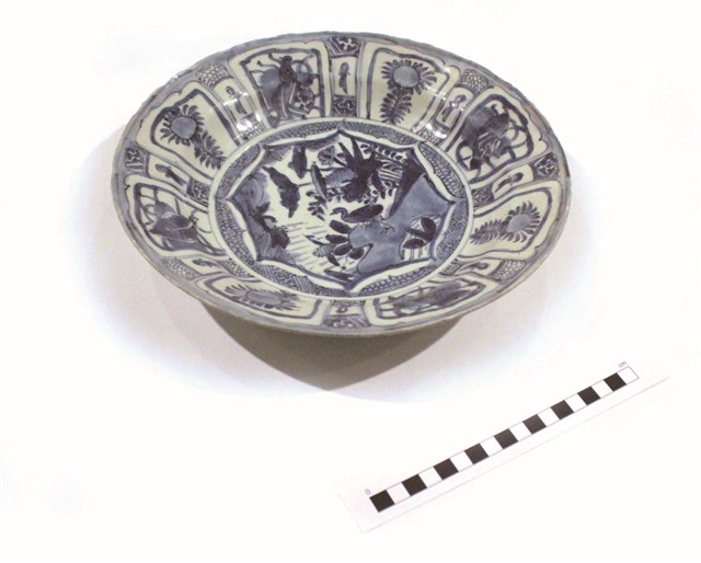 本件瓷器為葡萄牙籍萬曆號沉船(Wanli shipwreck)出水,1997年該沉船被發現於馬來西亞丁加奴州東岸海域,據研究其於1625年代遭到荷蘭聯合東印度公司的劫掠而沉沒。17世紀臺灣作為荷蘭及西班牙之轉口貿易據點,其周邊海域亦作為東亞貿易航線的必經網路,故澎湖風櫃尾及其周邊海域、安平熱蘭遮城、基隆和平島聖薩爾瓦多城考古遺址均有克拉克瓷器的發現。