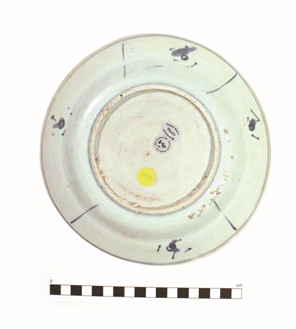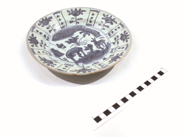 本件瓷器為葡萄牙籍萬曆號沉船(Wanli shipwreck)出水,1997年該沉船被發現於馬來西亞丁加奴州東岸海域,據研究其於1625年代遭到荷蘭聯合東印度公司的劫掠而沉沒。17世紀臺灣作為荷蘭及西班牙之轉口貿易據點,其周邊海域亦作為東亞貿易航線的必經網路,故澎湖風櫃尾及其周邊海域、安平熱蘭遮城、基隆和平島聖薩爾瓦多城考古遺址均有克拉克瓷器的發現。