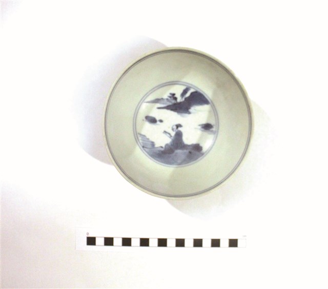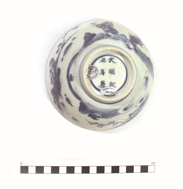 本件瓷器為葡萄牙籍萬曆號沉船(Wanli shipwreck)出水,1997年該沉船被發現於馬來西亞丁加奴州東岸海域,據研究其於1625年代遭到荷蘭聯合東印度公司的劫掠而沉沒。17世紀臺灣作為荷蘭及西班牙之瓷器轉口貿易據點,其周邊海域亦作為東亞貿易航線的必經網路,故澎湖風櫃尾及其周邊海域、安平熱蘭遮城、基隆和平島聖薩爾瓦多城考古遺址均有景德鎮青花瓷器的發現。