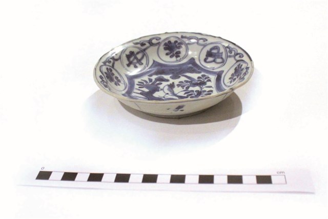 本件瓷器為葡萄牙籍萬曆號沉船(Wanli shipwreck)出水,1997年該沉船被發現於馬來西亞丁加奴州東岸海域,據研究其於1625年代遭到荷蘭聯合東印度公司的劫掠而沉沒。17世紀臺灣作為荷蘭及西班牙之轉口貿易據點,其周邊海域亦作為東亞貿易航線的必經網路,故澎湖風櫃尾及其周邊海域、安平熱蘭遮城、基隆和平島聖薩爾瓦多城考古遺址均有克拉克瓷器的發現。