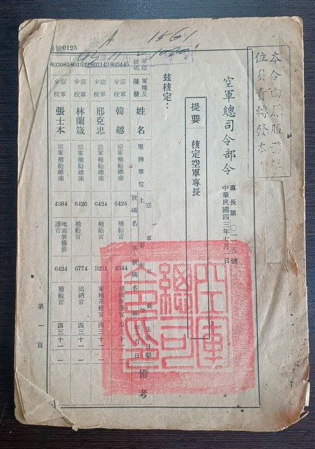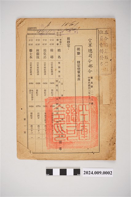 2024.009.0002 中華民國43年7月1日核定空軍專長空軍總司令部令