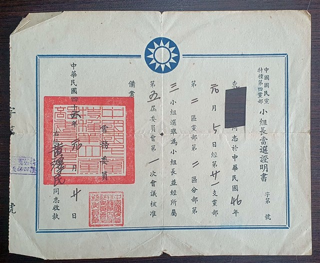 2024.009.0017 中華民國46年1月20日中國國民黨部特種第四黨部小組長當選證明書