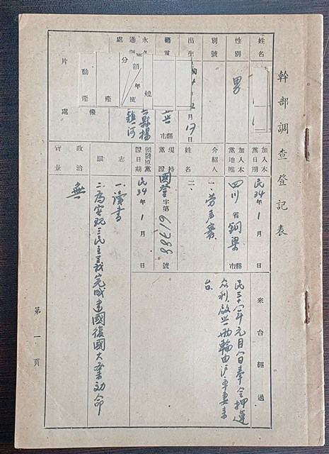 中華民國46年4月13日中國國民黨幹部調查登記表