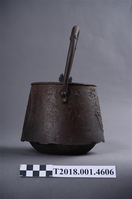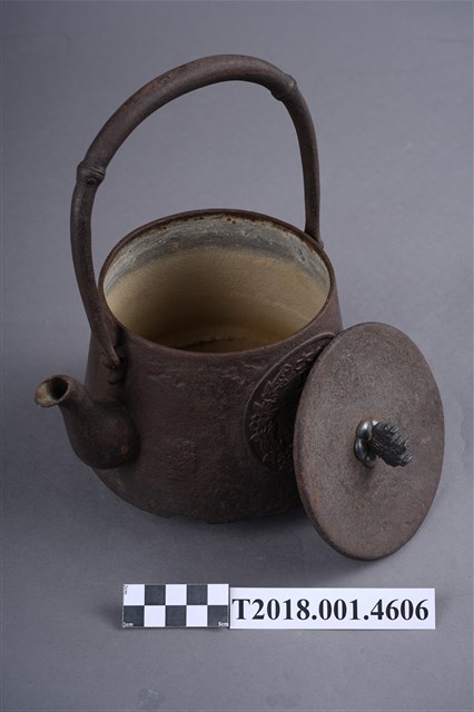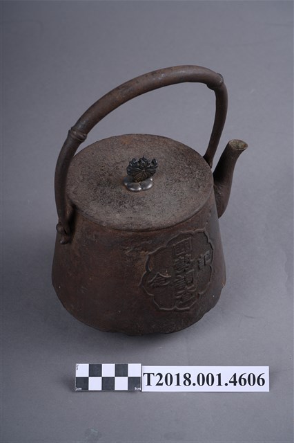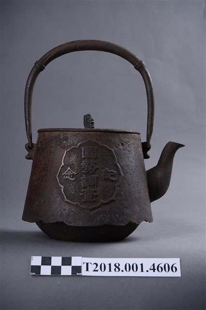1.本物件為大正十四年(1925)國勢調查紀念茶壺。為金屬材質,全黑。壺身中間印有「大正十四年調查」字樣。另一側則寫著「國勢調查紀念」。2.為理解臺灣住民的人口構造,後藤新平上任之後,於1898年聘請水科七三郎來臺,進行人口普查的推動工作,1904年12月,總督府展開戶口調查簿整理作業,訂正登錄錯誤和脫漏,並統一戶口調查簿樣式。1905年6月,針對人口普查內容進一步追加戶口調查簿記入事項,分別為:種族、婚姻身份、本業身份、副業身份、常用語、常用語以外的語言、假名讀寫程度、不具的原因、國籍等。該次人口普查命被為「第一次臨時臺灣戶口調查」,之後於1915年再度被實施,並於1920年起與日本本土同步,正名為「國勢調查」。