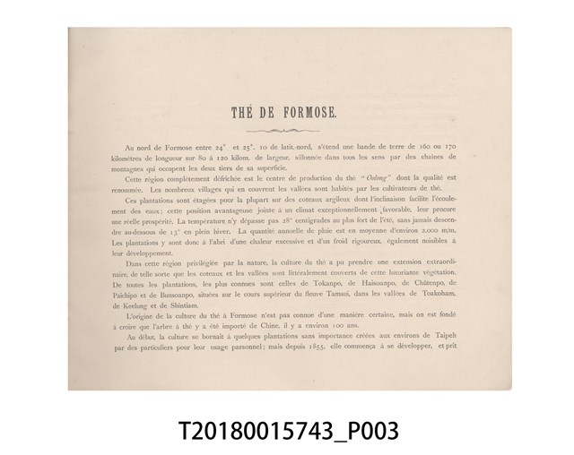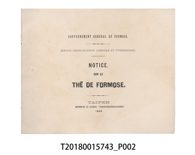 T2018.001.5743 臺灣總督府民政部發行《THÉ DE FORMOSE》法文書籍