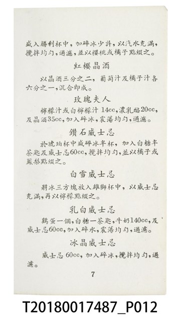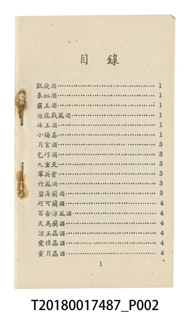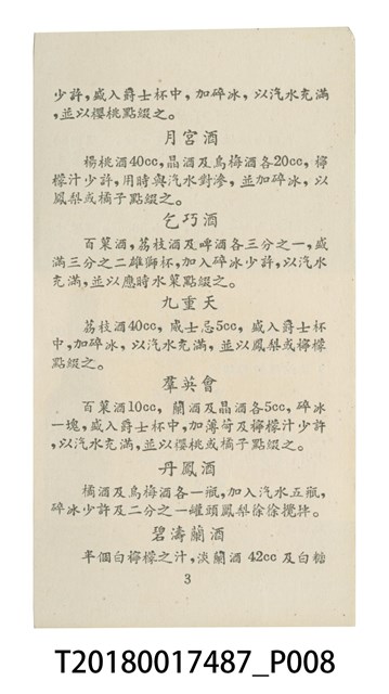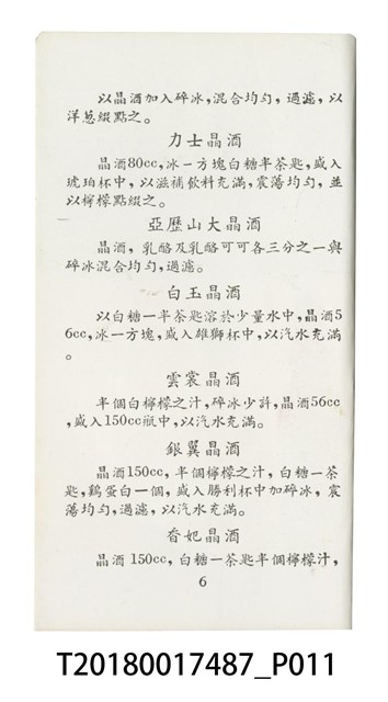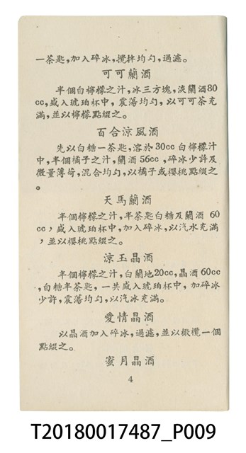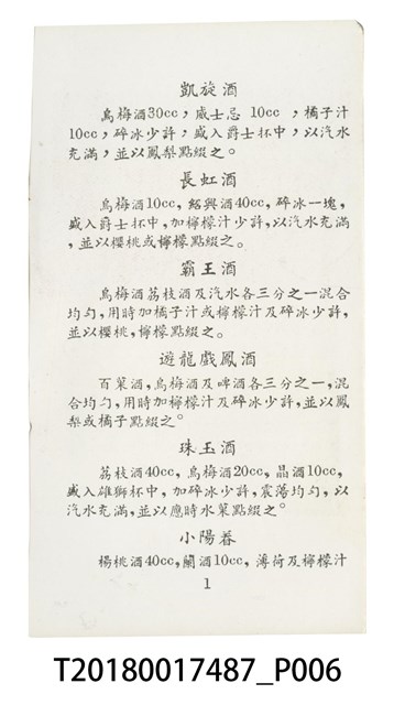 臺灣省菸酒公賣局編製《雞尾酒調合手冊》