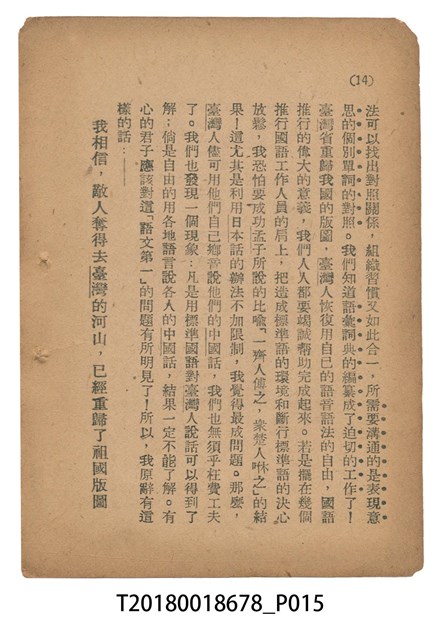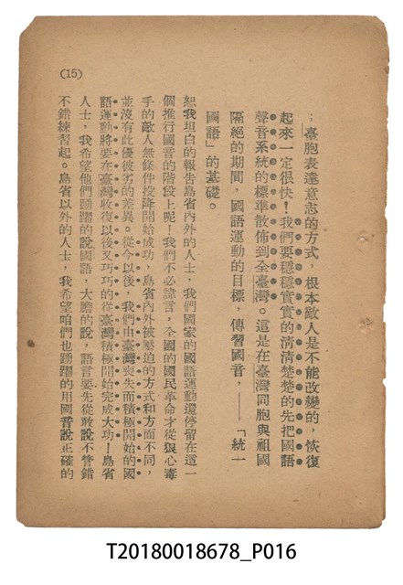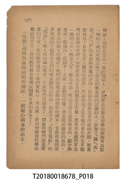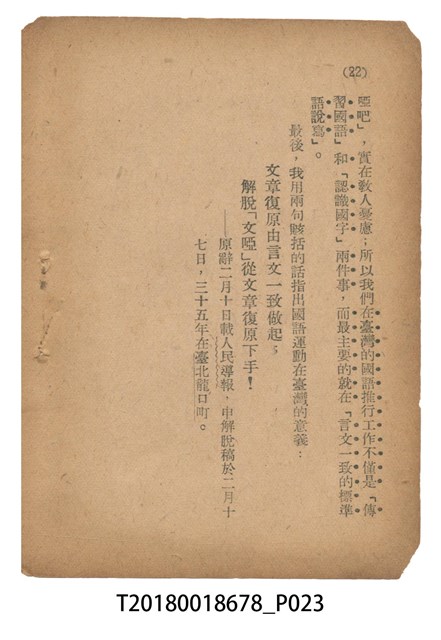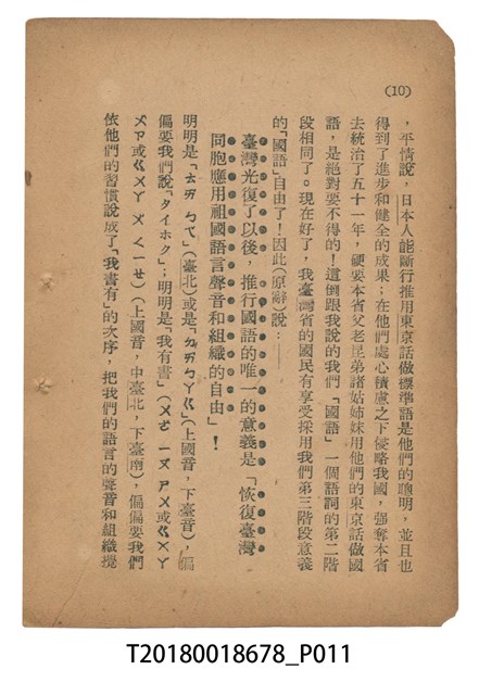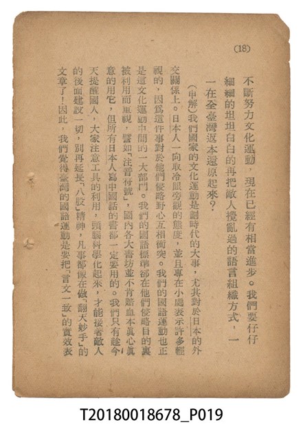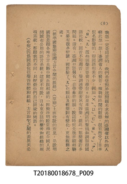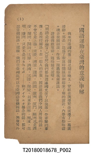 魏建功著《「國語運動在臺灣的意義」申解》