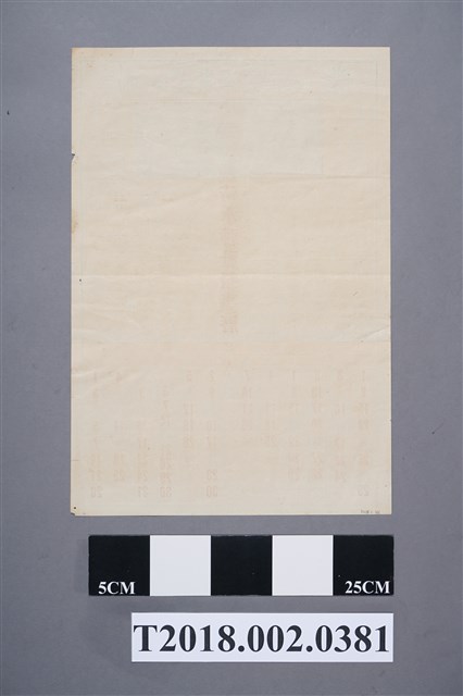 1.本物件為臺中清水神社祭事曆與奉納舊照。材質為紙製,兩張裱在同一框中。第一張為清水神社前皇紀兩千六百年奉祝祭的紀念照片。第二張為清水神社的行事曆。寫著昭和十五年、紀元貳千六百年,中間為清水神社的照片。接著記載神社一至十二月的祭事曆,下方則是休祝祭日表。行事曆一側記載著發行者為清水神社社務所;另一側寫有奉納清水街三塊厝黃茂林;下方有清水竹文堂印刷字樣。2.清水神社位於臺中州大甲郡清水街(今臺中市清水區),原為清水街長周貽楚闢建的運動場,於1937年動工,同年11月23日鎮座,主祀天照大神、開拓三神(大國主命、大己貴命、少彥名命)和北白川宮能久親王,例祭日為10月17日。1943年學者國分直一於此地發現牛罵頭遺址,戰後1950年代成為中華民國陸軍飛彈部隊營區,至1997年7月軍方將土地還給臺中縣政府,2002年臺中縣文化局將此區列為牛罵頭遺址文化園區。
