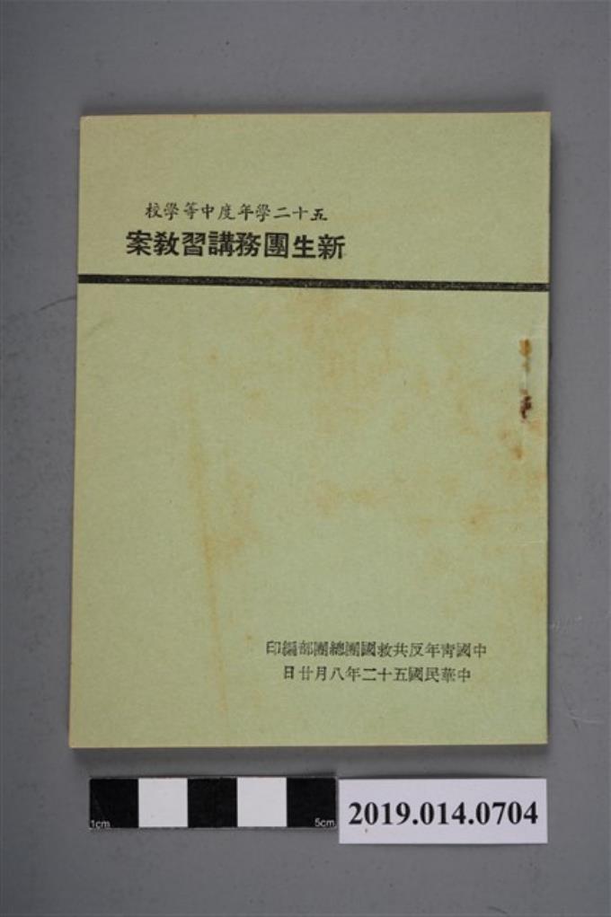 中國青年反共救國團總團部編印《52學年度中等學校新生團務講習教案》