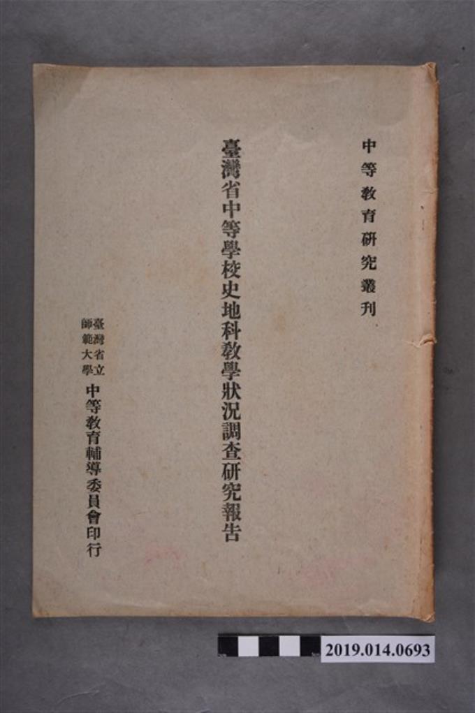 臺灣省立師範大學中等教育輔導委員會印行《臺灣省中等學校史地科教學狀況調查研究報告》