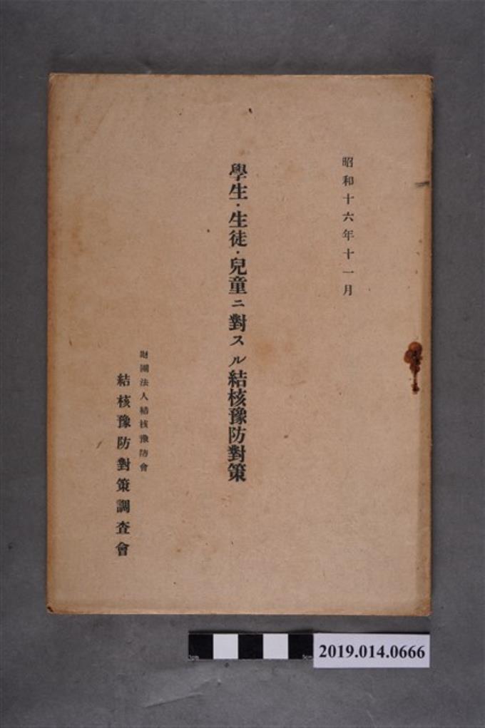 財團法人結核豫防會臺灣地方本部結核預防對策調查會出版《針對學生、生徒、兒童的結核預防對策》