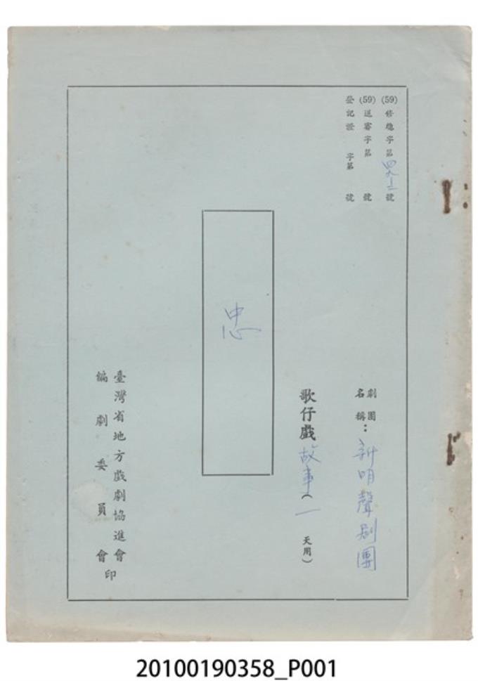 新明聲歌劇團劇本《忠》
