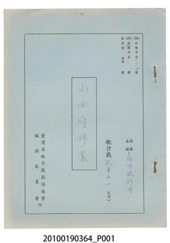 成功歌劇團劇本《山西府慘案》
