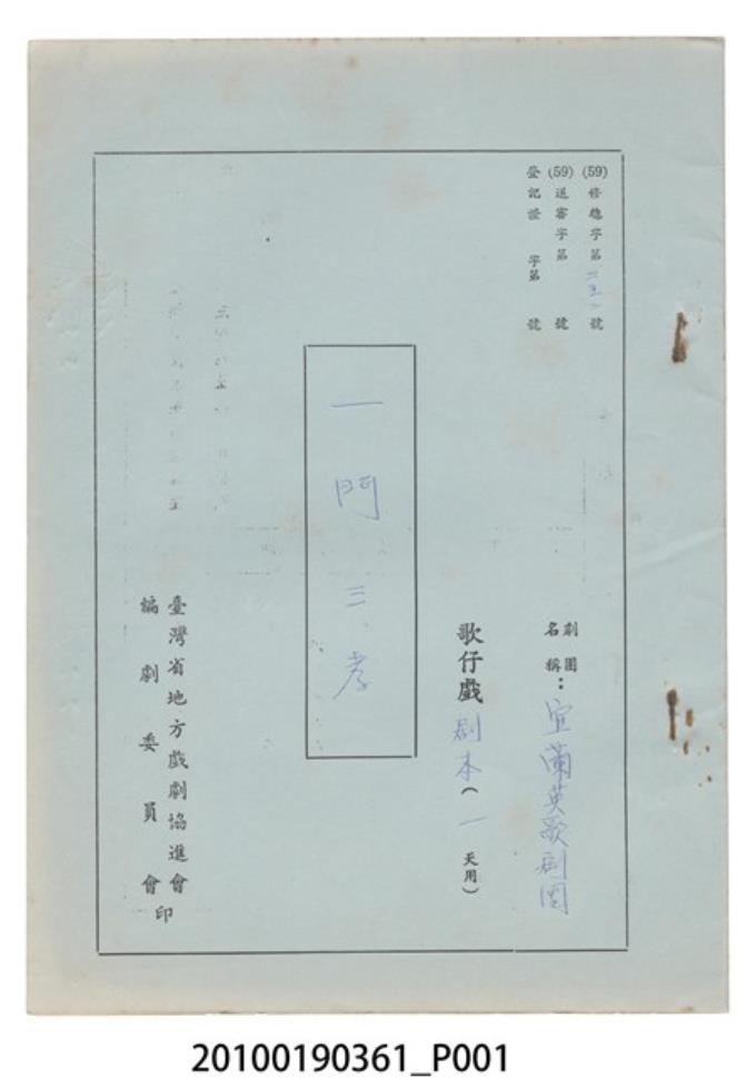 宜蘭英歌劇團劇本《一門三孝》