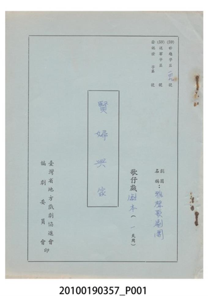 雅聲歌劇團劇本《賢婦興家》