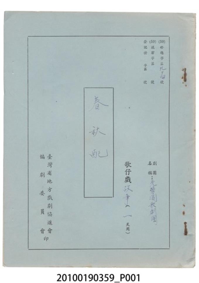 光榮園歌劇團劇本《春秋配》