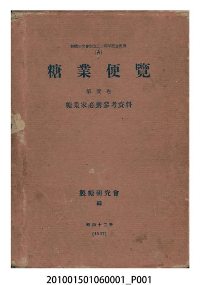 製糖研究會著作發行《糖業便覽:糖業家必携參考資料》第1卷