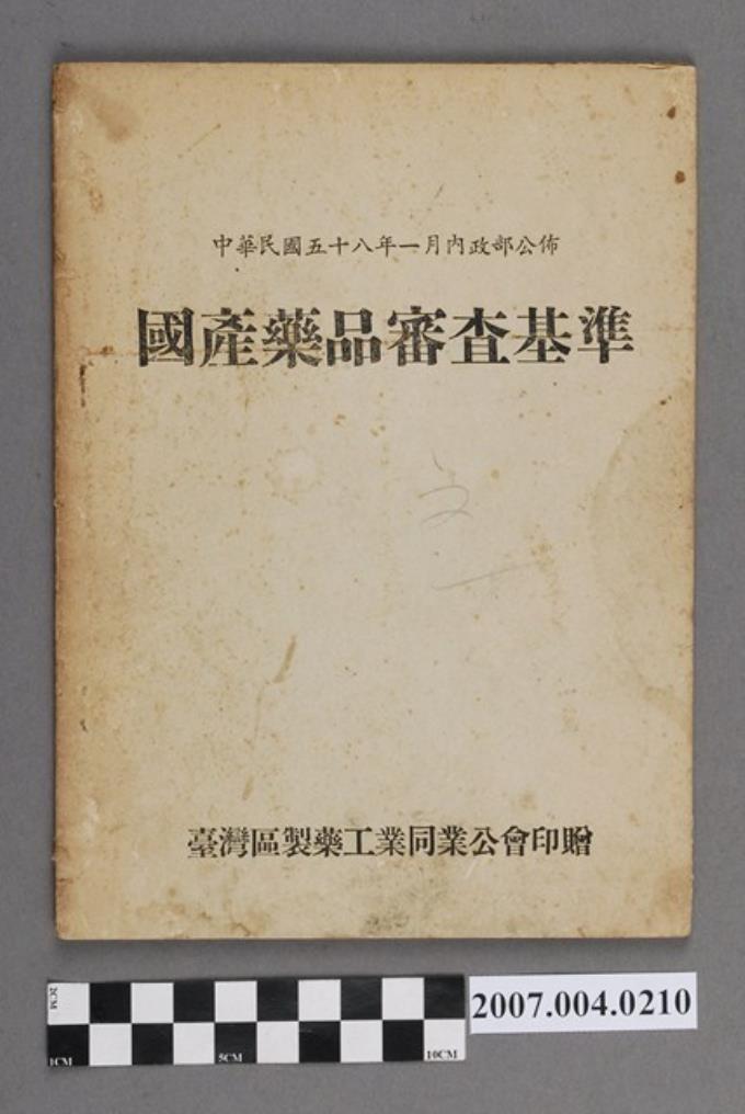 臺灣區製藥工業同業公會印贈《國產藥品審查基準》
