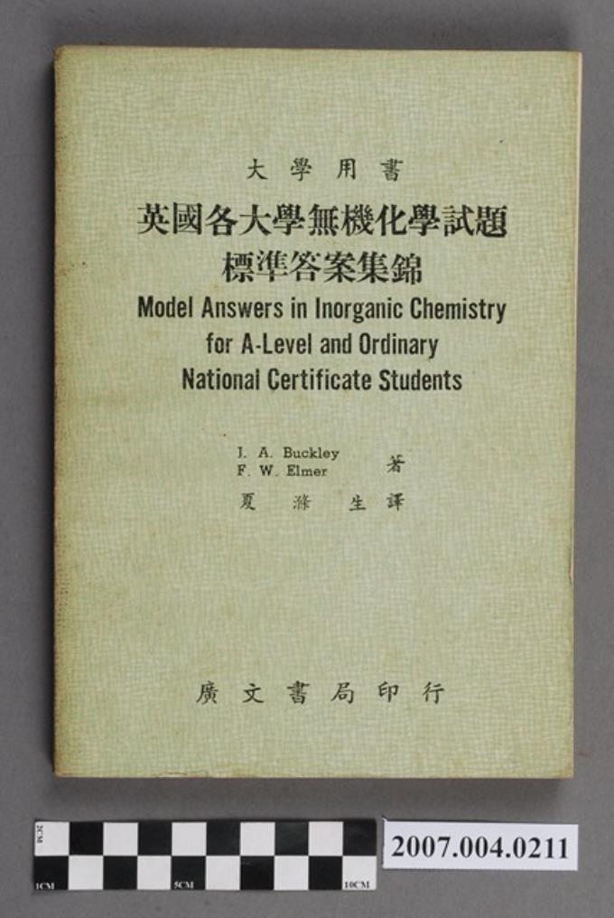 J. A. 伯克利等著《英國各大學無機化學試題標準答案集錦》