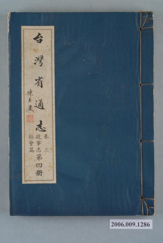 臺灣省文獻委員會出版《臺灣省通志》卷三政事志社會篇第四冊