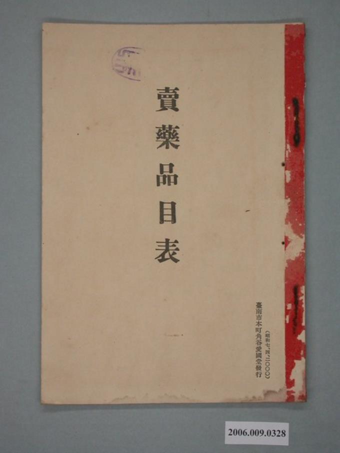 臺南市本町角谷愛國堂發行《賣藥品目表》