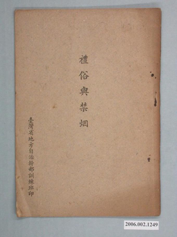 臺灣省地方自治幹部訓練班印《禮俗與禁烟》