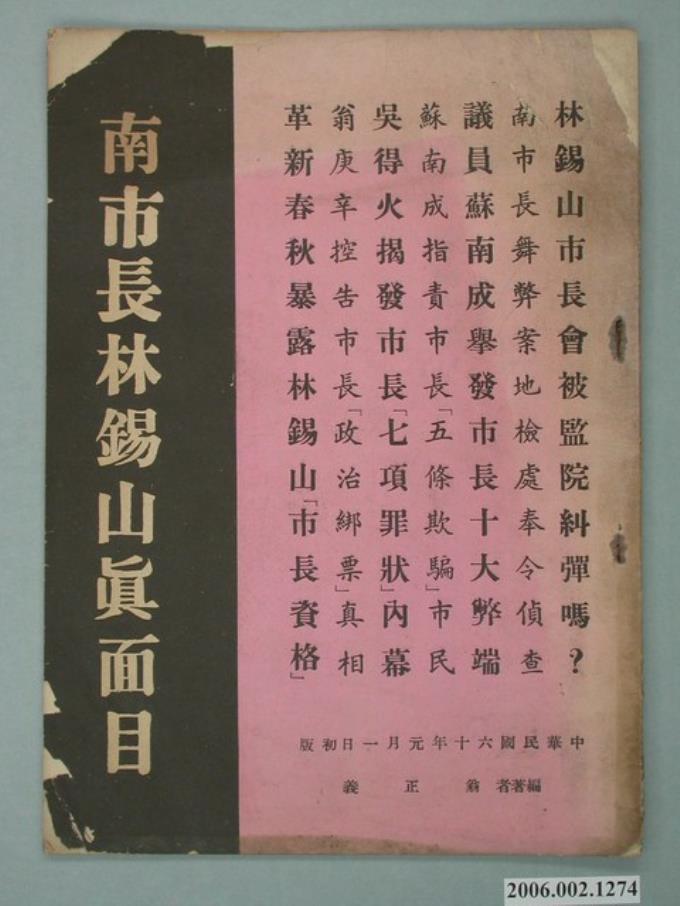 翁正義編著「南市長林錫山真面目」選舉文宣