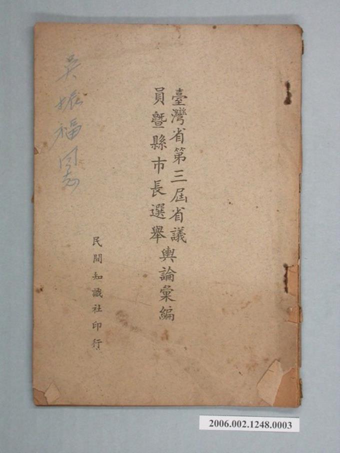 民間知識社印行《臺灣省第三屆省議員暨縣市長選舉輿論彙編》
