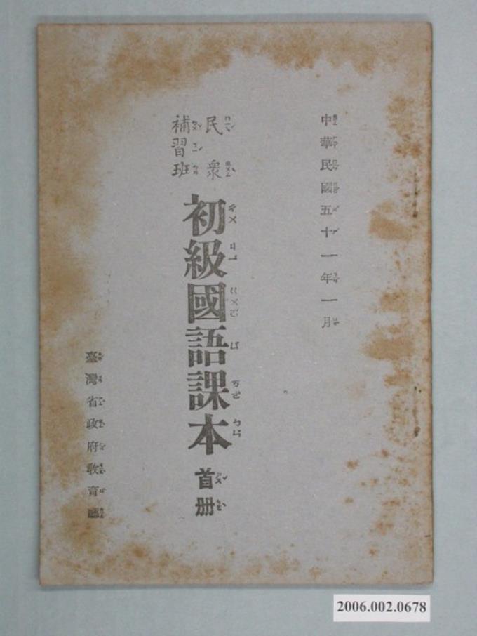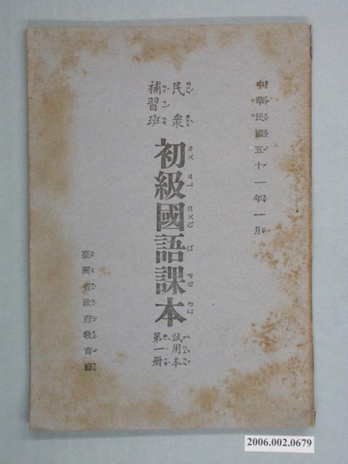 臺灣省政府教育廳發行《民眾補習班初級國語課本》首冊