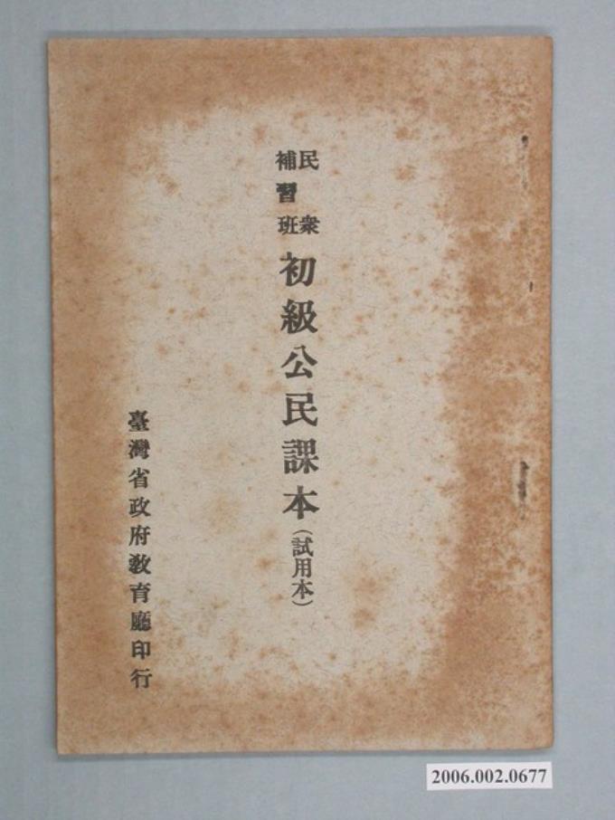 教育部社會教育司主編《民眾補習班初級公民課本試用本》