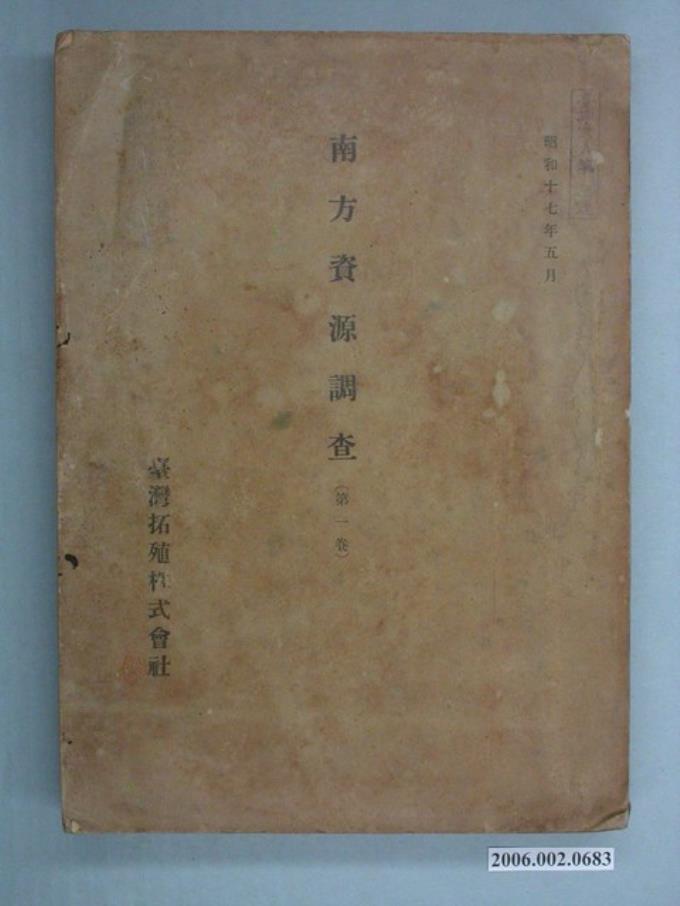 臺灣拓殖株式會社出版《南方資源調查:第一卷》