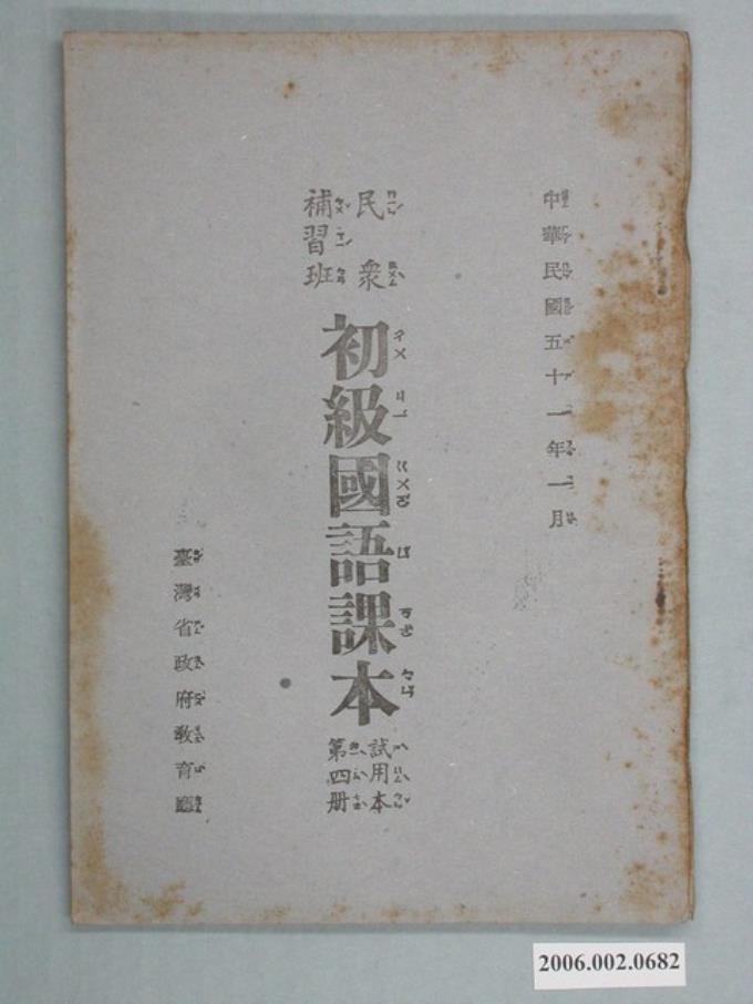 臺灣省政府教育廳發行《民眾補習班初級國語課本試用本》第四冊
